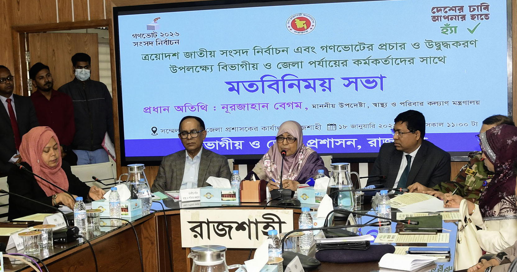তিনি (১৮ জানুয়ারি) রোববার সকালে রাজশাহী জেলা প্রশাসকের সম্মেলনকক্ষে আয়োজিত গণভোট ২০২৬ বিষয়ক বিভাগীয় ও জেলা পর্যায়ের কর্মকর্তাদের সাথে এক মতবিনিময় সভায় প্রধান অতিথির বক্তব্যে এসব কথা বলেন।