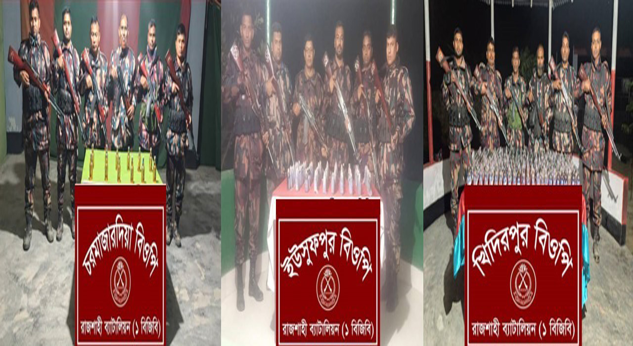 স্টাফ রিপোর্টার : রাজশাহী সীমান্তে বিজিবি’র পৃথক সফল অভিযানে বিপুল পরিমান ভারতীয় মাদকদ্রব্য জব্দ করে।