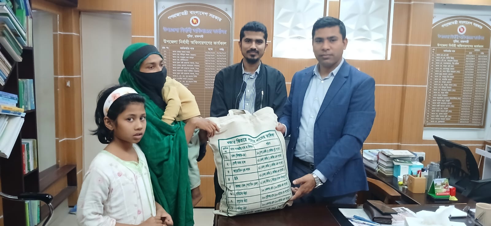 পরিস্থিতির বিষয়টি জানতে পেরে পুঠিয়া উপজেলা নির্বাহী অফিসার লিয়াকত সালমান এবং সহকারী কমিশনার ভূমি শিবু দাস দ্রুত পরিবারটির খোঁজখবর নেন। পরে উপজেলা নির্বাহী অফিসারের কার্যালয়ে ডেকে তাদের হাতে খাদ্যসামগ্রী ও প্রয়োজনীয় সহায়তা তুলে দেওয়া হয়। এ সময় পরিবারের সার্বিক অবস্থা সম্পর্কে খোঁজখবর নেওয়া হয় এবং ভবিষ্যতেও প্রশাসনের পক্ষ থেকে প্রয়োজনীয় সহযোগিতার আশ্বাস দেওয়া হয়।