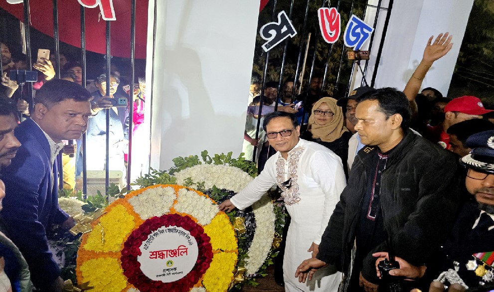 স্টাফ রিপোর্টার : রাজশাহী সিটি কর্পোরেশনের উদ্যোগে ২১ ফেব্রুয়ারি মহান শহিদ দিবস ও আন্তর্জাতিক মাতৃভাষা দিবস ২০২৬ যথাযথ মর্যাদায় পালন করা হয়েছে। দিবসের প্রথম প্রহর ১২ টা ০১ মিনিটে সোনাদিঘি মোড়স্থ রাজশাহী কেন্দ্রীয় শহিদ মিনারে পুস্পস্তবক অর্পণের মাধ্যমে ভাষা শহিদদের প্রতি শ্রদ্ধা জানান রাজশাহী সিটি কর্পোরেশনের মাননীয় প্রশাসক ও রাজশাহী বিভাগীয় কমিশনার ড. আ. ন. ম বজলুর রশীদ। এ সময় সিটি করপোরেশনের কর্মকর্তাবৃন্দ এবং কর্মচারী ইউনিয়নের পক্ষ থেকেও শ্রদ্ধা নিবেদন করা হয়।