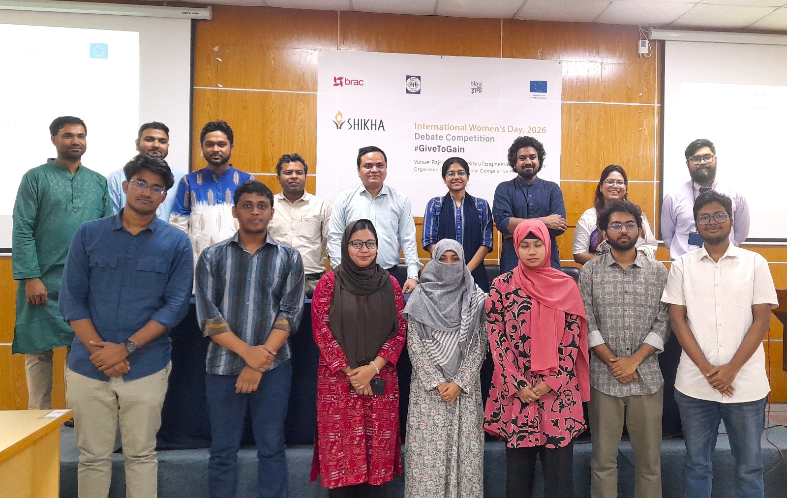 স্টাফ রিপোর্টার : আন্তর্জাতিক নারী দিবস উপলক্ষে রাজশাহী প্রকৌশল ও প্রযুক্তি বিশ্ববিদ্যালয়ে ‘ইন্টারন্যাশনাল ওমেন্স’ডে ২০২৬ ডিবেট কম্পিটিশন’ অনুষ্ঠিত হয়েছে। রবিবার (৮ মার্চ) বিশ্ববিদ্যালয়ের হলরুমে এই প্রতিযোগিতার আয়োজন করে ব্র্যাক সোশাল কমপ্লায়েন্স প্রোগ্রাম।