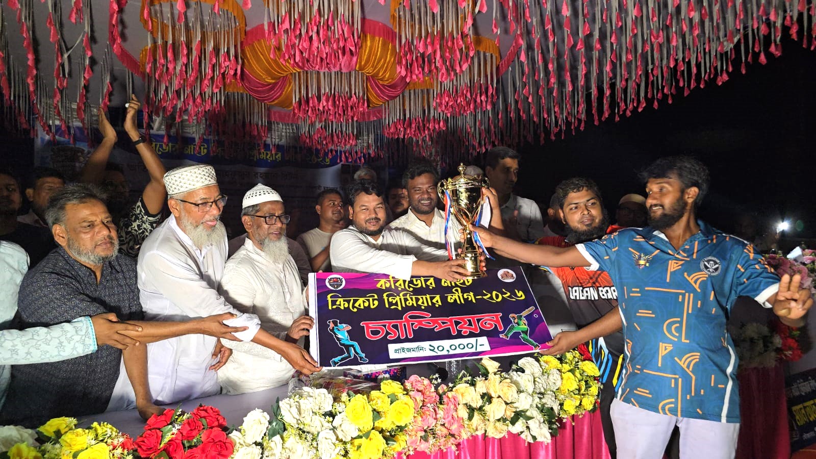 স্টাফ রিপোর্টার : এনামুল হক স্মৃতি ক্রীড়া সংঘ, রাজশাহীর আয়োজনে শনিবার (২৫ এপ্রিল) রাতে নগরীর ২৯ নং ওয়ার্ডের করিডোর মাঠে করিডোর নাইট ক্রিকেট প্রিমিয়ার লীগ-২০২৬ এর ফাইনাল খেলা ও পুরস্কার বিতরণ অনুষ্ঠান অনুষ্ঠিত হয়েছে। অনুষ্ঠানে প্রধান অতিথি হিসেবে উপস্থিত থেকে পুরস্কার বিতরণ করেন রাজশাহী সিটি কর্পোরেশনের প্রশাসক মোঃ মাহফুজুর রহমান রিটন।